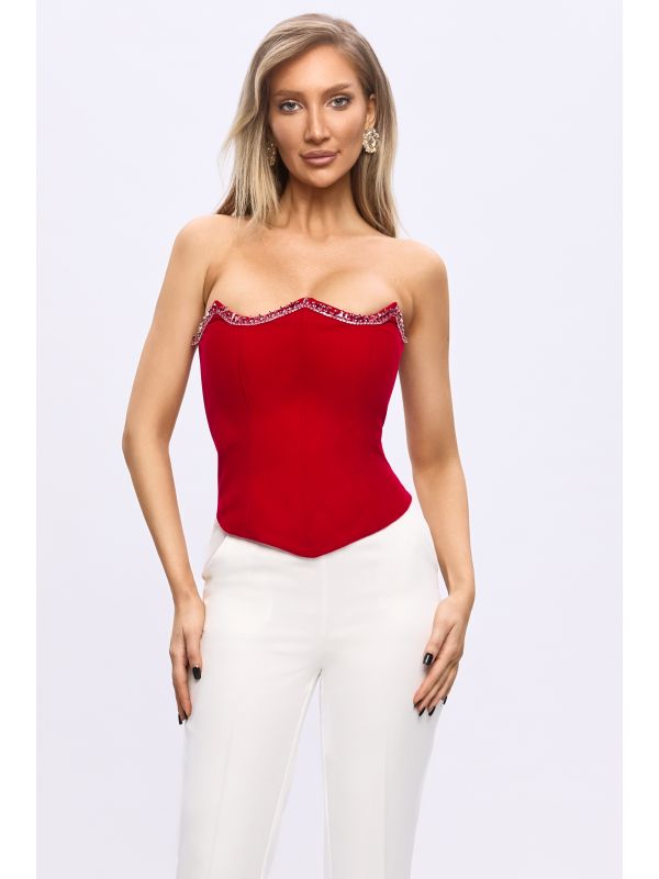 49. Corset rosu din catifea, accesorizat cu pietre pretioase BBY-CO11F