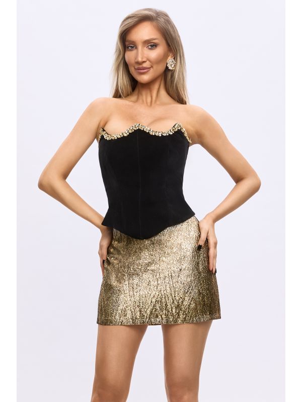 48. Compleu din doua piese, corset negru din catifea si fusta scurta BBY-CS38F