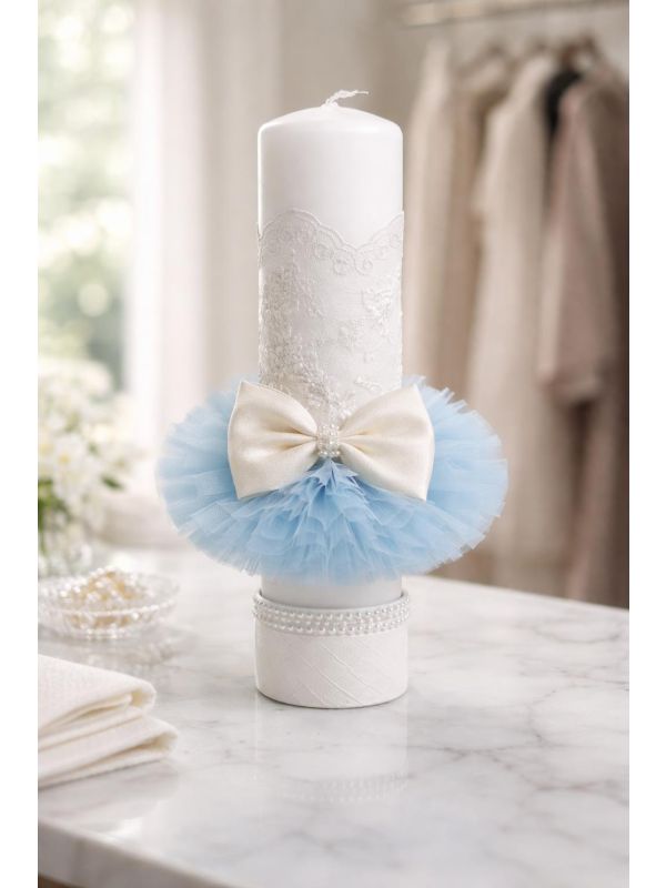 17. Lumanare botez baiat funda alba / tiul bleu 1207 SP-LUMANARE01V