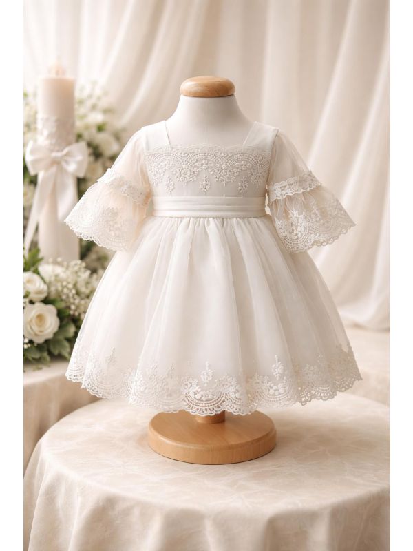 25. Rochie alba combinata ghipura si tul pentru bebe 1950 MY-R15V
