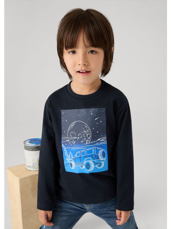 51. Tricou maneca lunga cu motiv interactiv pentru baiat 173 MY-BL07R