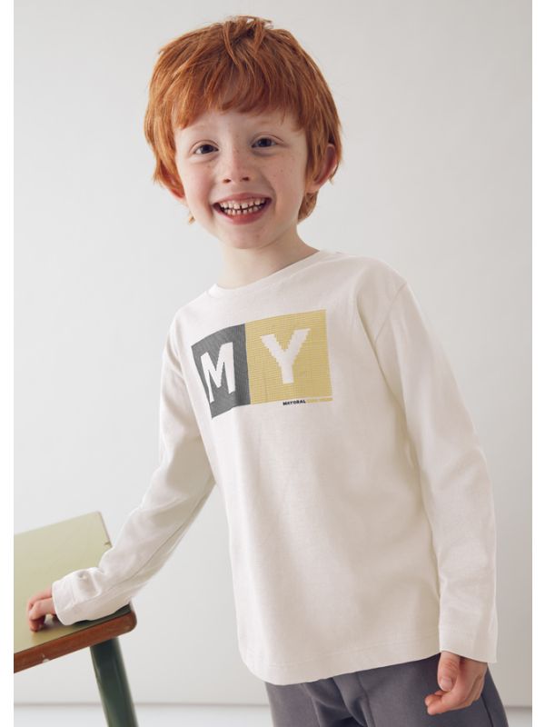 23. Bluza alba litere lenticulare baiat MAYORAL 4077 MY-BL11F