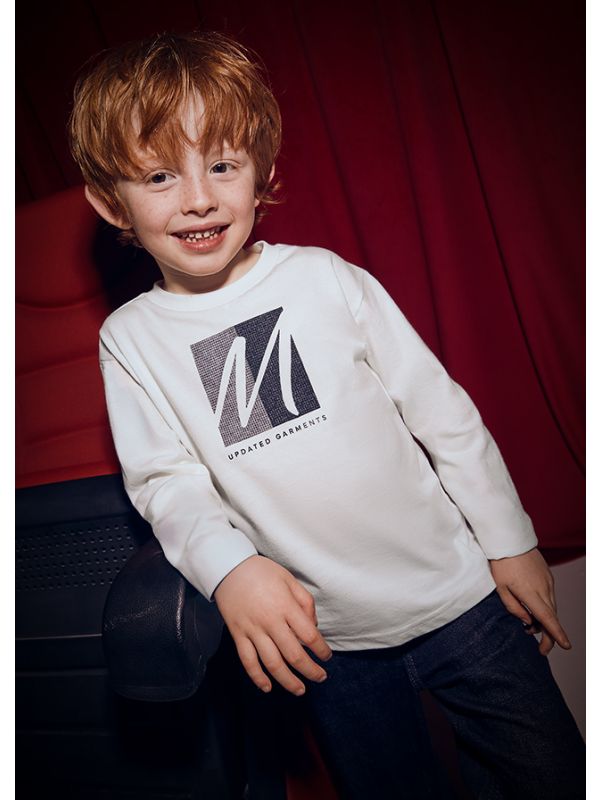 52. Tricou alb maneca lunga grafica pentru baiat 4020 MY-BL28R