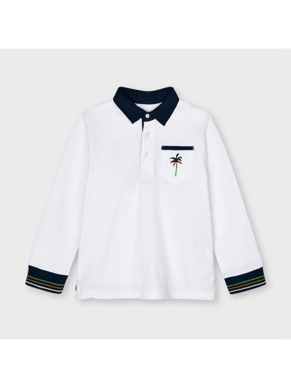 45. Polo alb maneca lunga Better Cotton baiat 3111 MY-BL52T