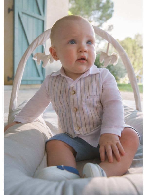 60. Set pantaloni scurti si camasa cu vesta nou-nascut 1212 MY-CS06A