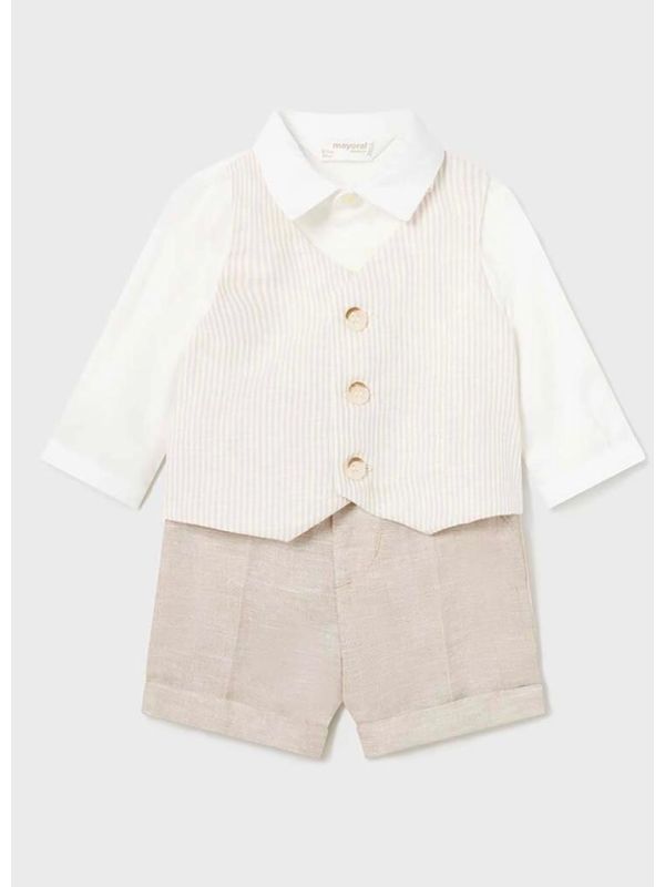 6. Set bej pantaloni scurti si camasa cu vesta 1212 MY-CS06A