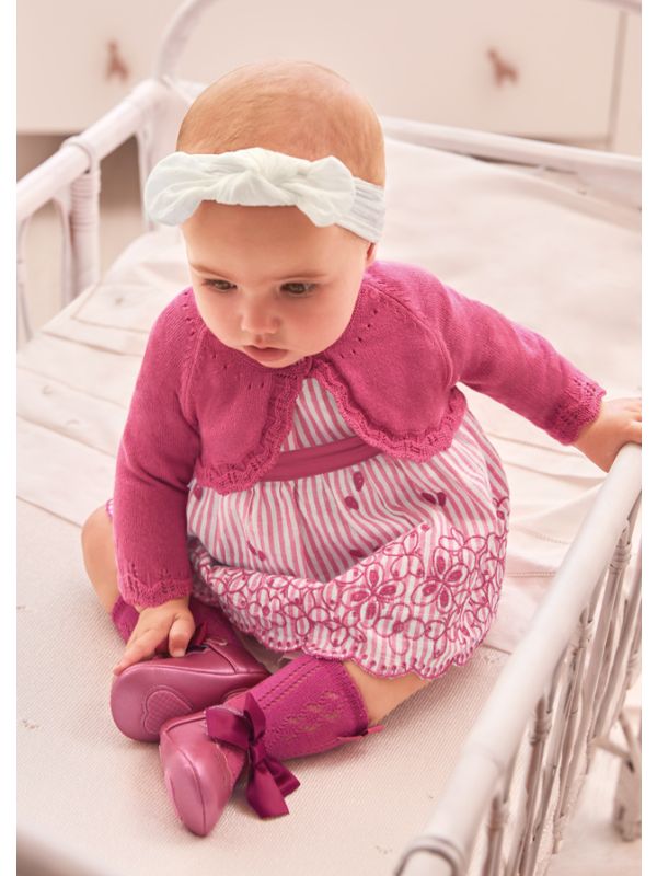 9. Cardigan tricot roz cu bumbac sustenabil pentru nou-nascut 0318 MY-BO02V
