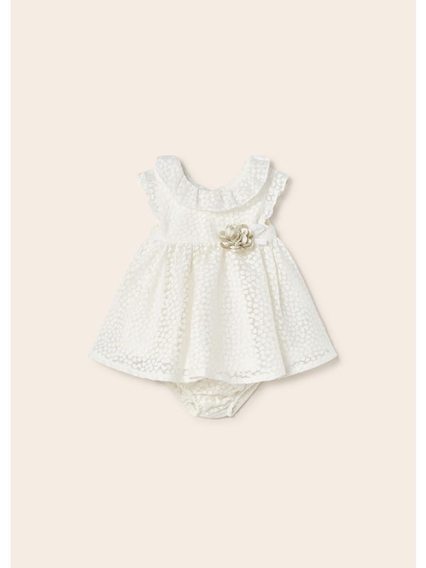 17. Rochie alba eleganta si chilotei asortati pentru nou-nascut 1811 MY-R03V