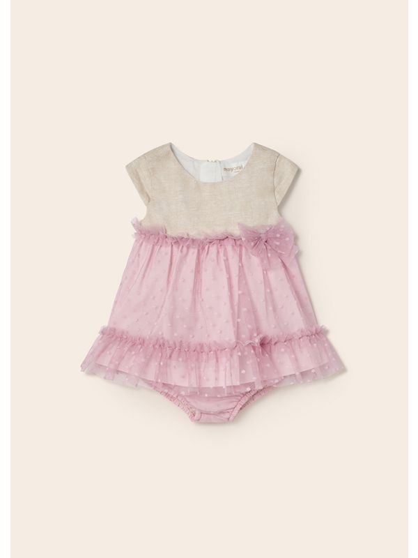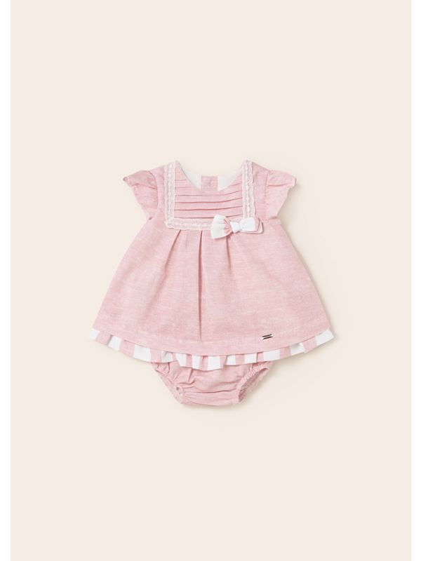 24. Rochie roz din in si chilotei asortati pentru nou-nascut 1821 MY-R09V