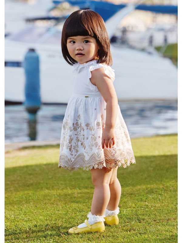 32. Rochie alba cu motiv brodat si in pentru bebe 1955 MY-R16V