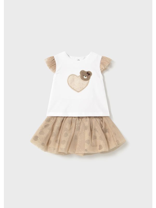 11. Set cu fusta maro cu tul ursuleti bebe fata MAYORAL 1874 MY-CS09A