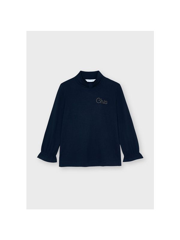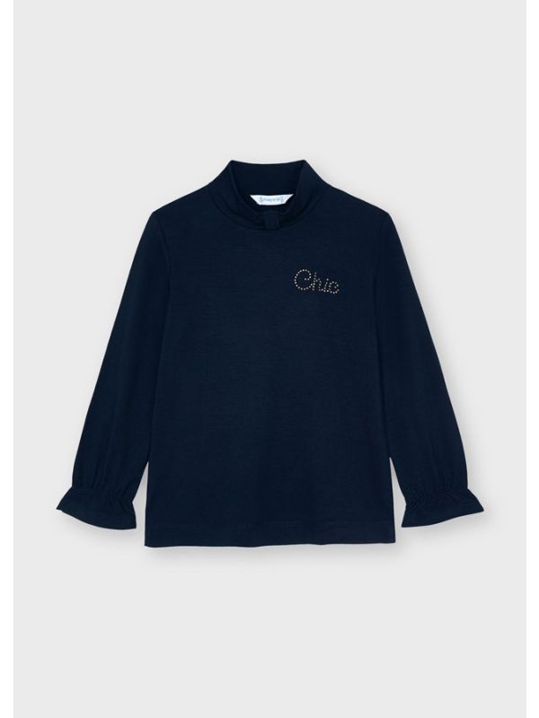 1. Bluza bleumarin cu fundita guler inalt ECOFRIENDS basic fata cu ECOVERO MAYORAL 145 MY-BL74Y