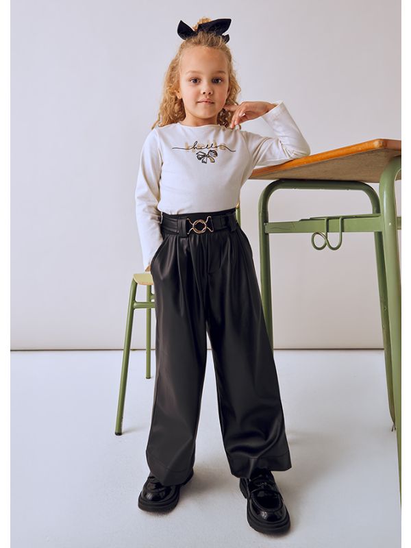 52. Pantaloni NEGRI piele ecologica pentru fetita 4763 MY-PL07M