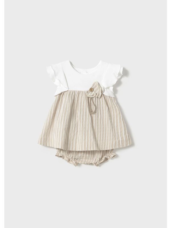 51. Rochie cu chilotei dungi bej din in nou-nascut MAYORAL 1858 MY-R35A