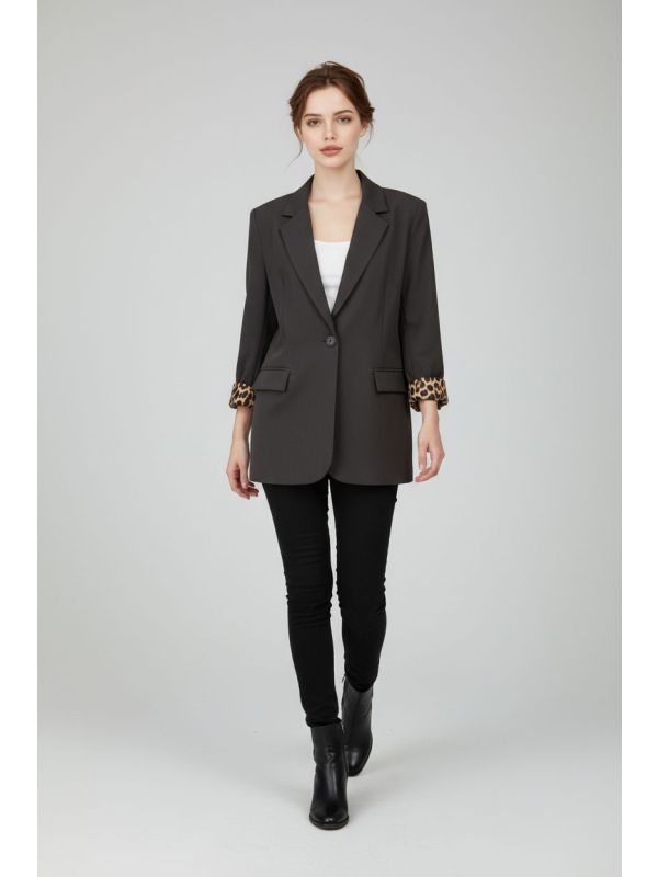 5. Sacou maro inchis cu detalii animal print IT-SC04J