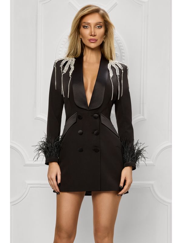 23. Rochie sacou neagra accesorizata cu franjuri de cristale argintii BBY-R83A