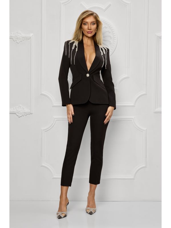 27. Costum negru accesorizat cu cristale argintii si pantaloni conici BBY-CS30A