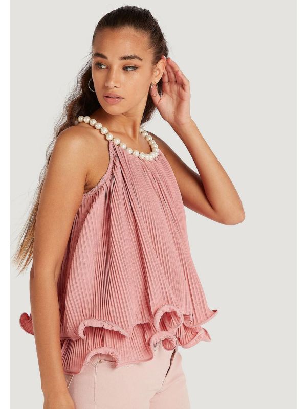 2. Bluza in pliuri roz cu perle IT-BL123A