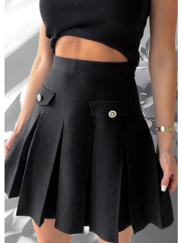 57. FUSTA PLISATA NEAGRA CU BUTONI ARGINTII IT-FS02F