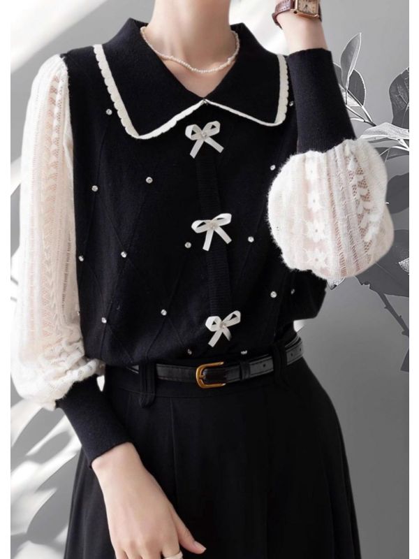 59. Bluza eleganta cu guler, accesorizata cu pietricele si fundite IT-BL31F