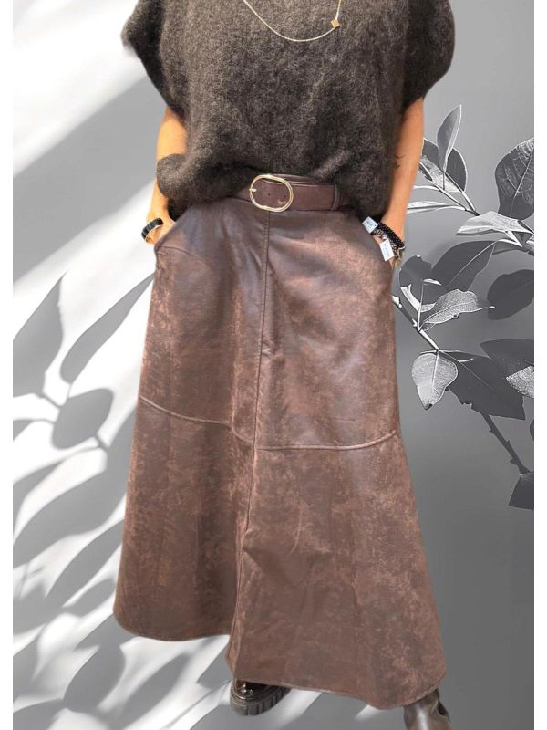 6. Fusta lunga din piele maro cu finisaj mat IT-FL05F