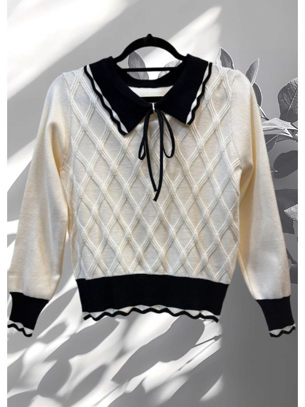 1. Bluza crem cu guler negru si funda IT-BL52F