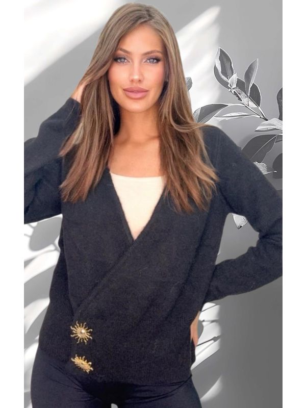 15. Cardigan negru tip wrap din tricot moale cu nasturi decorativi IT-BL26F