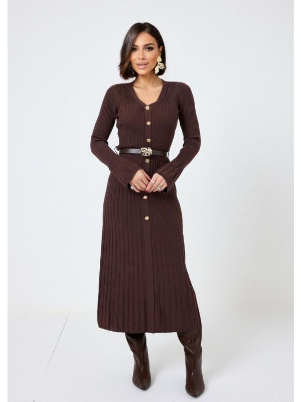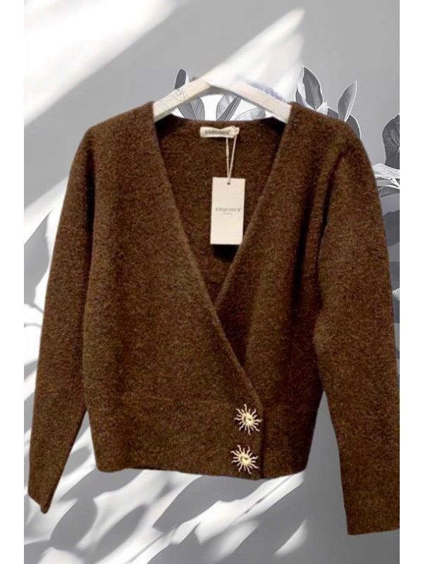 14. Cardigan maro tip wrap din tricot moale cu nasturi decorativi IT-BL26F