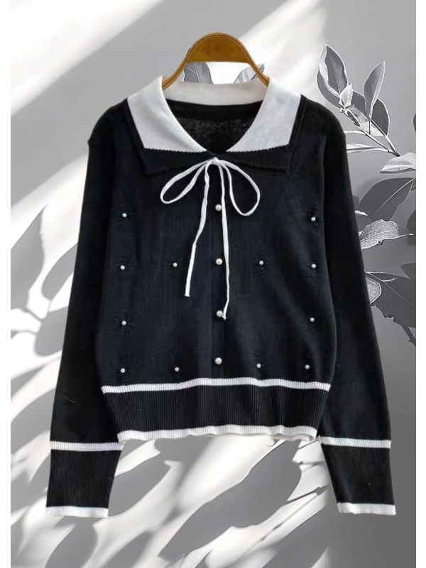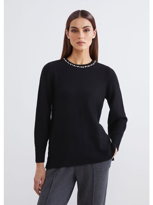 17. Pulover negru cu guler alb si margele IT-BL52F