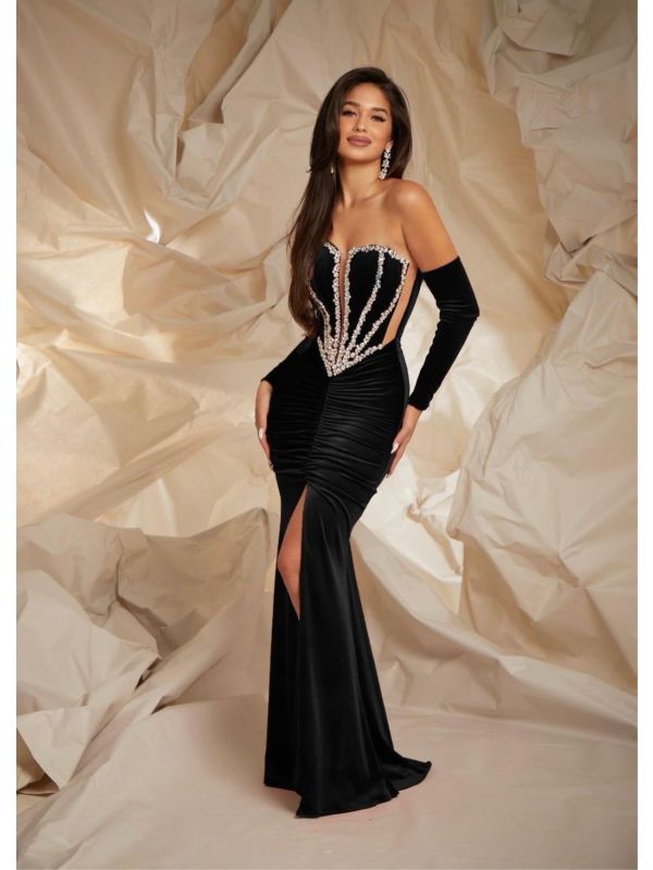 8. Rochie neagra lunga in pliuri IT-RL05F