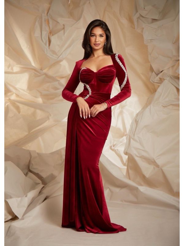 7. Rochie burgundy lunga in pliuri IT-RL05F