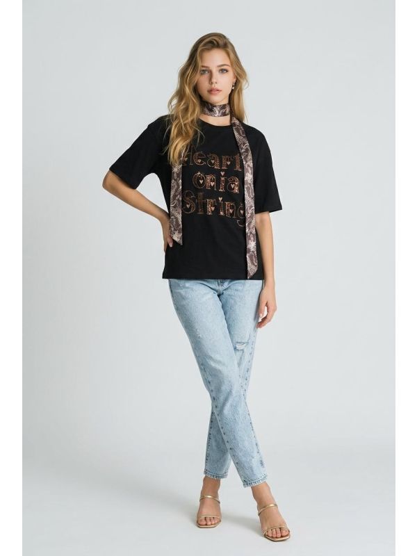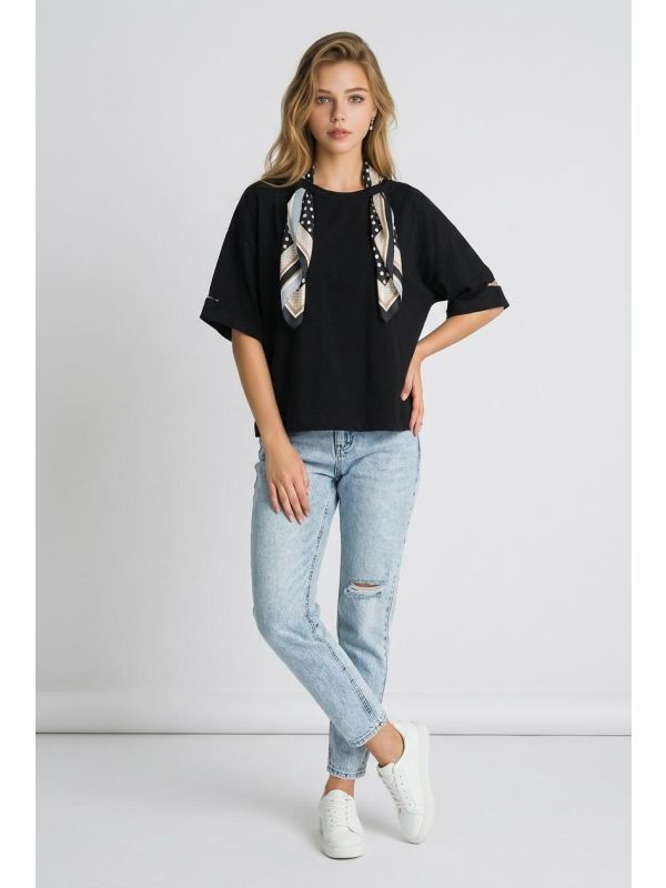 48. Tricou negru cu esarfa IT-BL14J