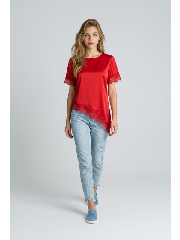 30. Tricou rosu asimetric cu dantela IT-BL15J