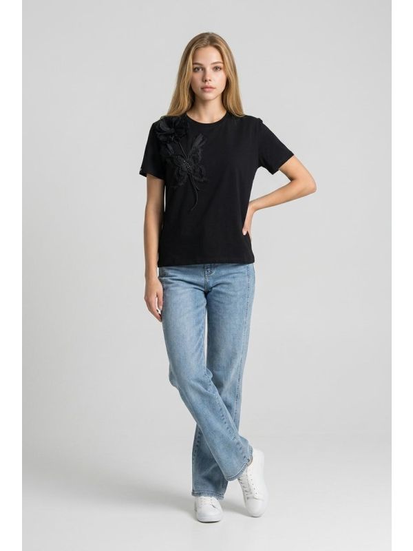 4. Tricou negru cu detalii florale IT-BL05J