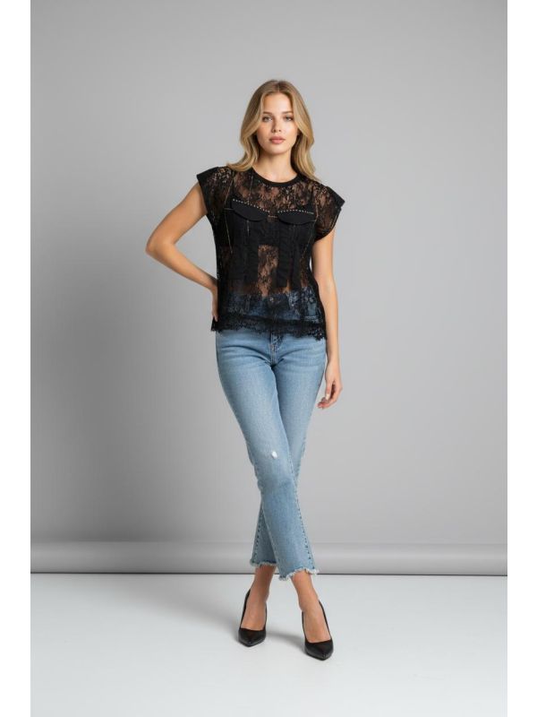 56. Tricou negru din dantela IT-BL17J