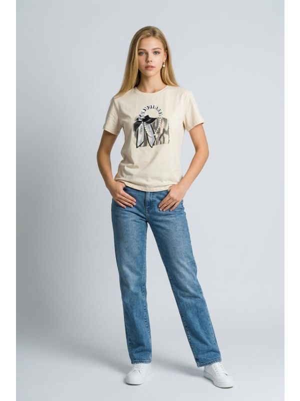 58. Tricou bej cu imprimeu IT-BL08J