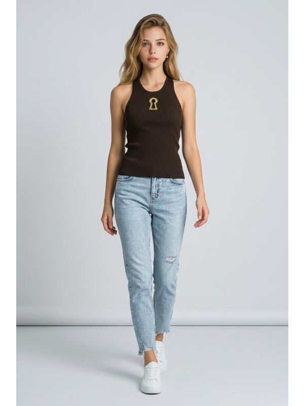 32. Bluza fara maneci maro cu accesoriu auriu IT-BL16J