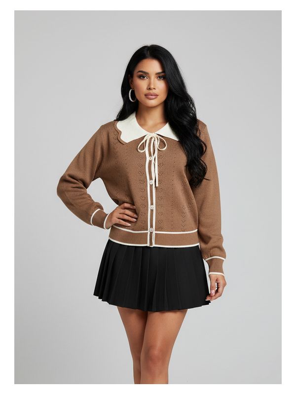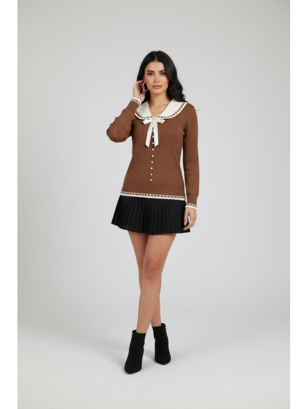 2. Bluza maro cu guler crem si funda satinata IT-BL52F