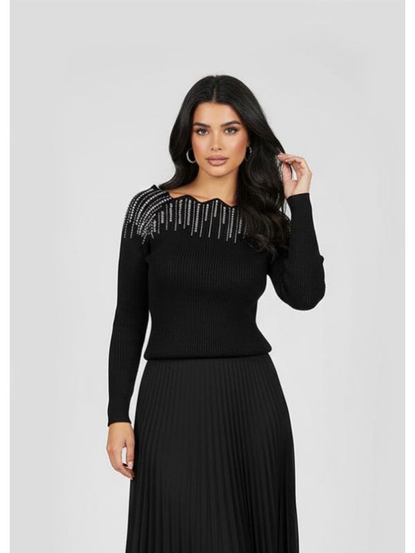 12. Bluza tricotata neagra cu aplicatii pietre IT-BL130F