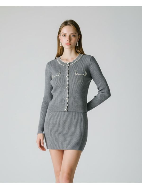 8. Bluza tricotata gri cu aplicatii perle IT-BL32F