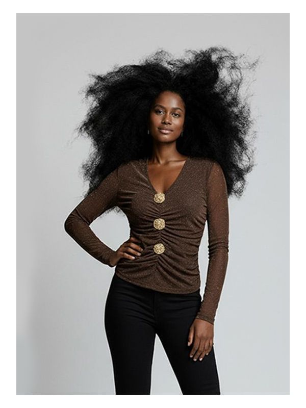3. Bluza lycra maro cu accesoriu auriu si decolteu in V IT-BL76F
