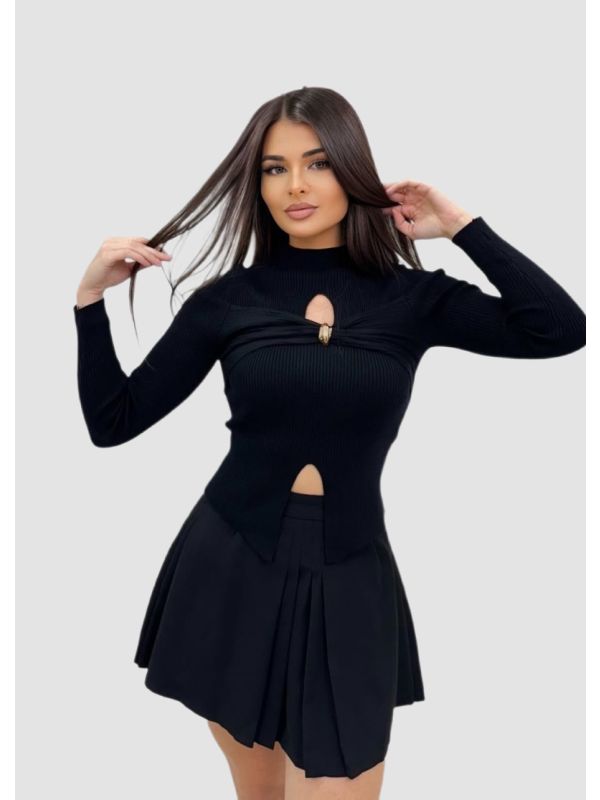 6. BLUZA NEAGRA CU MODEL DIN CATIFEA SI ACCESORIU AURIU IT-BL-120F