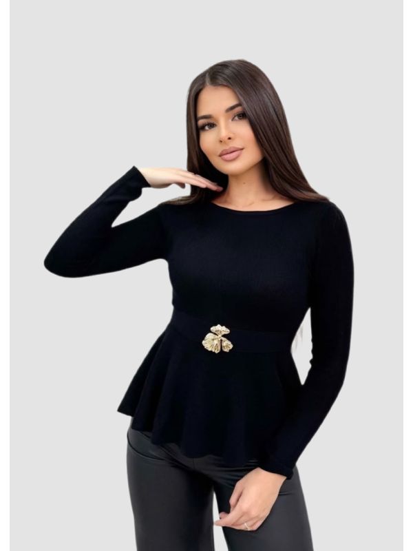 10. Bluza neagra cu detaliu decorativ auriu IT-BL85F