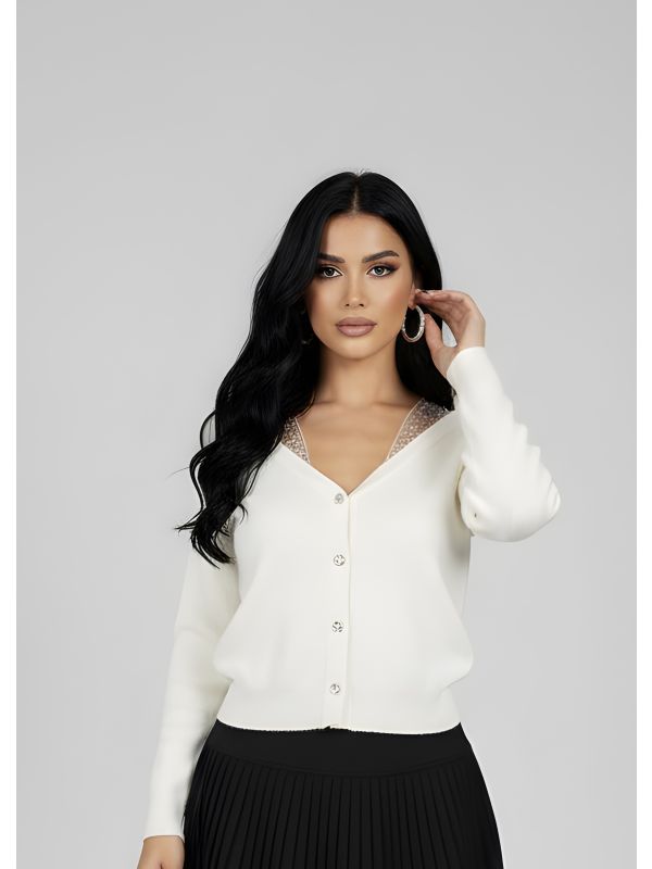 13. Bluza ivory cu decolteu in V si plasa cu pietricele IT-BL124F