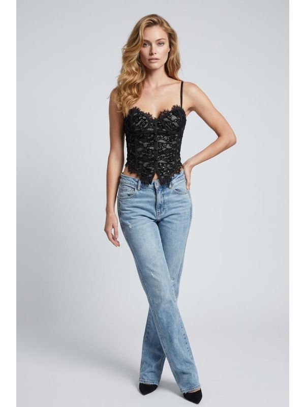 14. Corset elegant negru si taupe cu detalii din voal IT-CO02A