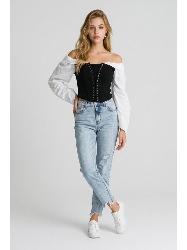10. Corset negru din tafta, accesorizat cu nasturi mici BBY-CO02J