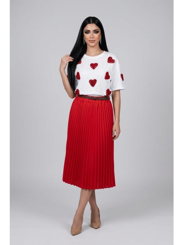 1. Fusta lunga rosie cu pliuri IT-FL01J