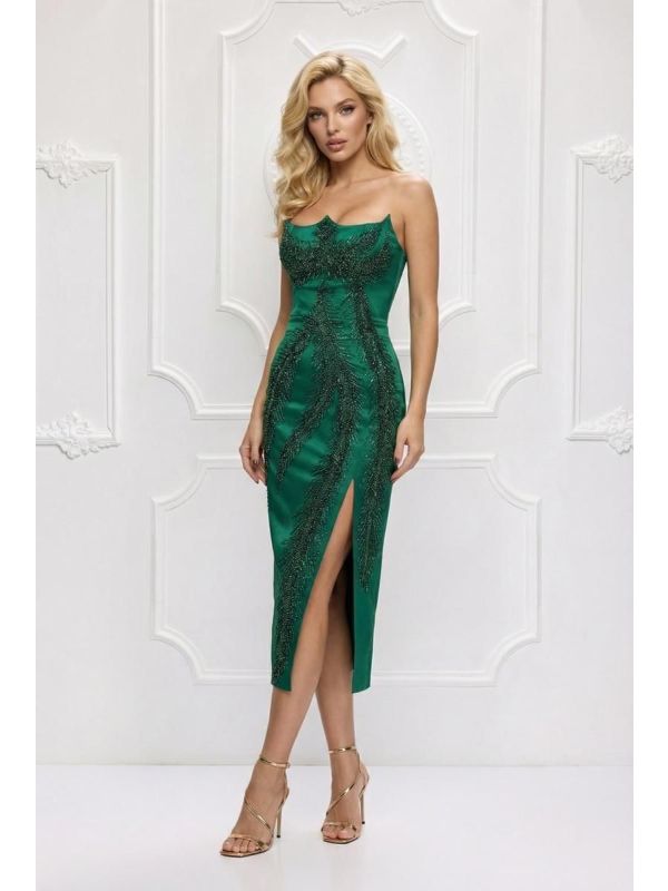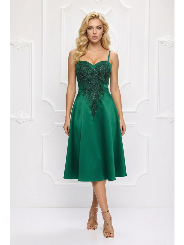 2. Rochie midi din dantela verde smarald BBY-R27J