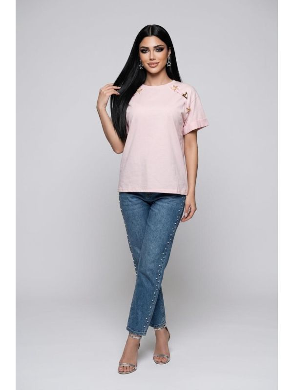 1. Tricou dama roz accesorizat cu perle IT-BL06J