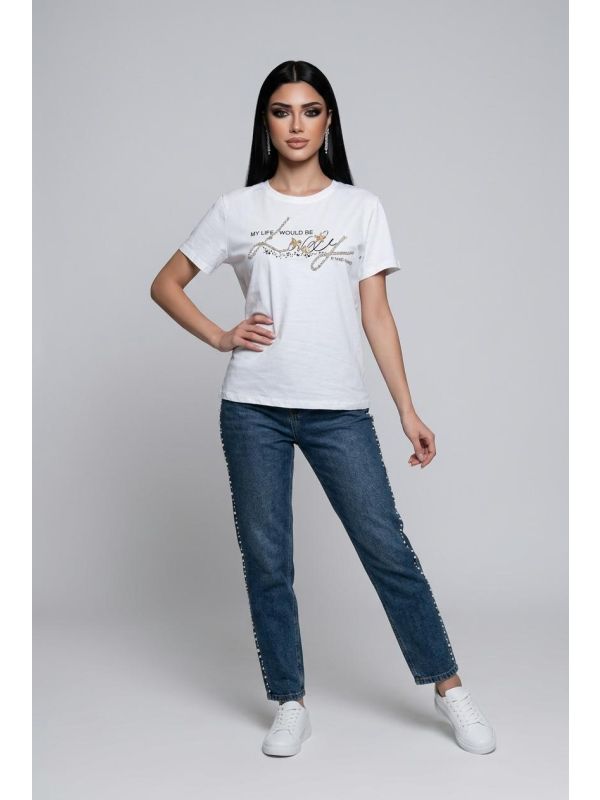 3. Tricou alb dama accesorizat IT-BL10J
